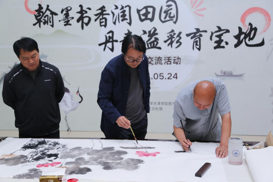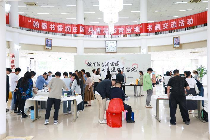 为了弘扬中华优秀传统文化,营造热爱国粹、热爱书画艺术的氛围,更好地推动校园文化建设,图书馆联合学院工会、宝坻区文化馆于5月24日下午在社科馆举办“翰墨书香润田园 丹青溢彩育宝地”书画交流活动。宝坻区文化和旅游局副局长张英、bevitor伟德国际1946官网副院长兼财务总监王俊敏、bevitor伟德国际1946官网党委副书记、工会主席郭雅娟、宝坻区文化馆馆长倪芳芳、宝坻区的书画家、文化馆工作人员、图书馆全体馆员以及学院书画爱好者200余人参加了活动。