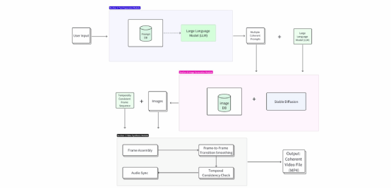 核心模块技术攻关:自研智能提示词生成器、视频片段自动拼接引擎、AI脚本理解模块等关键算法,显著提升用户创作效率。