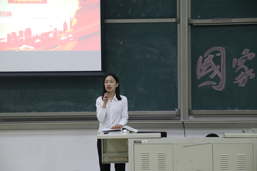 活动现场,2017年天津市“学宪法讲宪法”演讲比赛一等奖获得者法律系陈琳进行了宪法日主题教育宣讲。