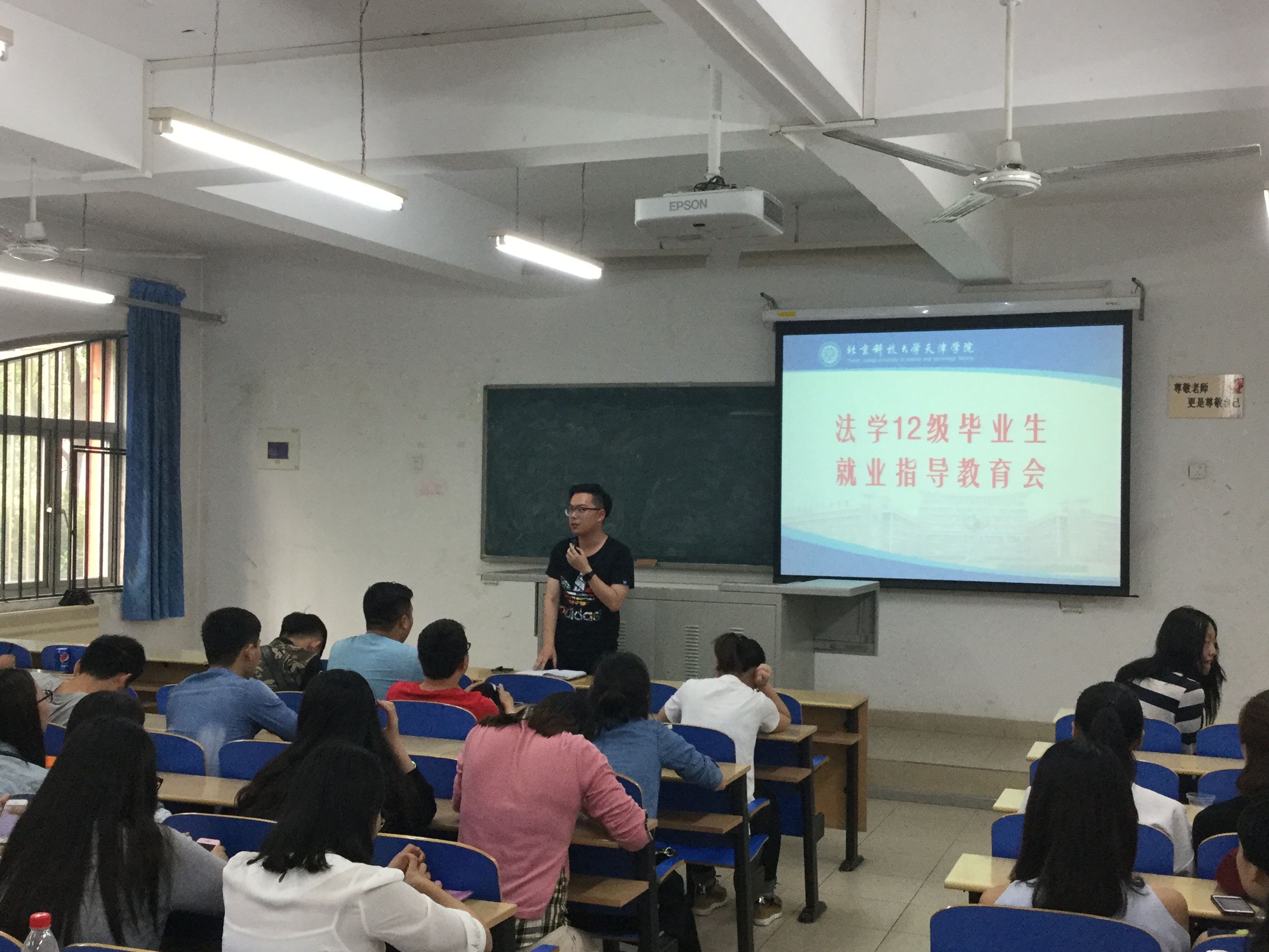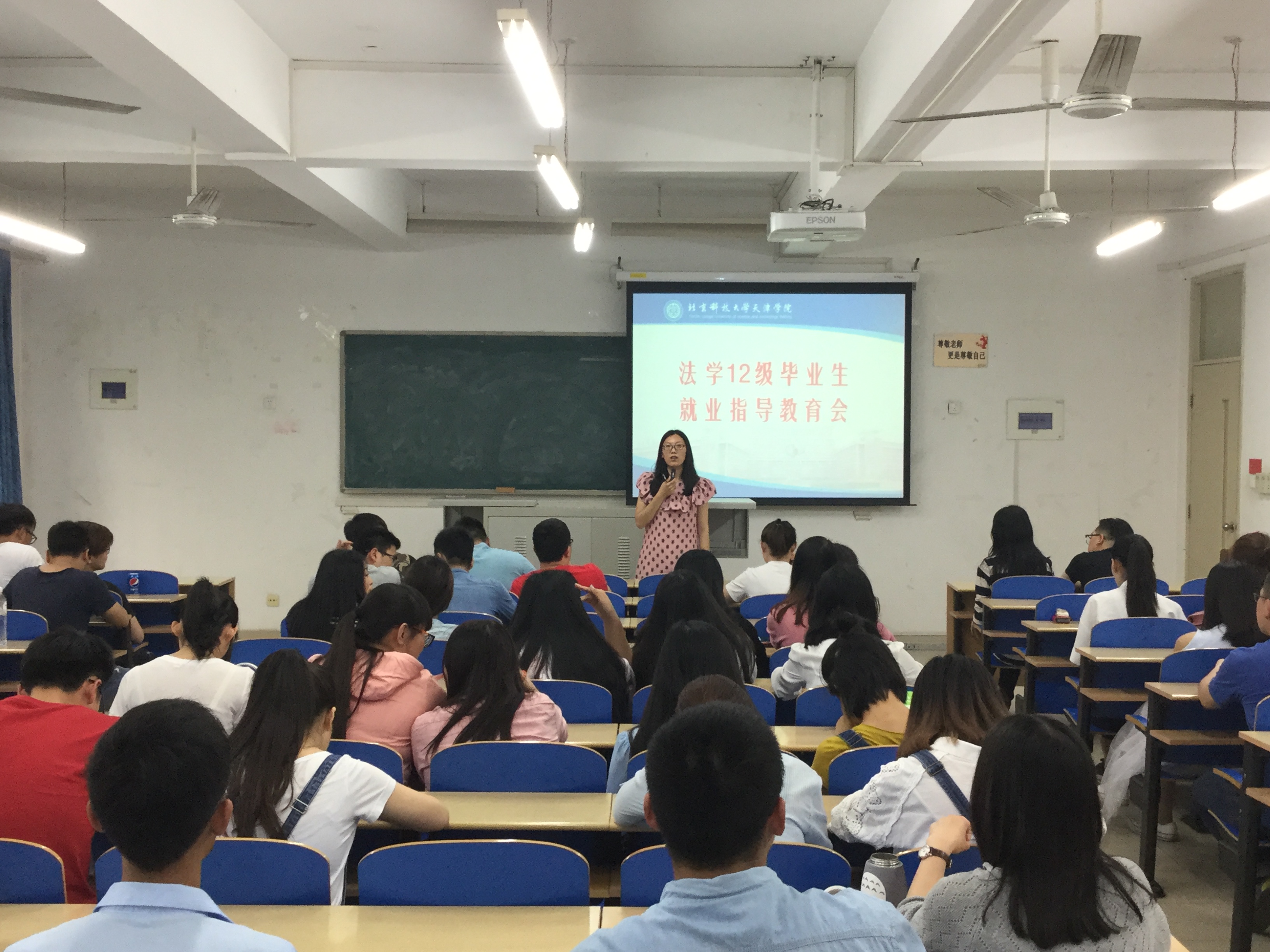 2016年5月11日下午16点,在九教106法律系举行了2016届毕业生就业指导教育会,法律系党总支书记冯海燕、法律系分团委书记闫谡、辅导员助理朱嘉阳以及全体12级毕业生出席了此次教育会。