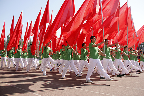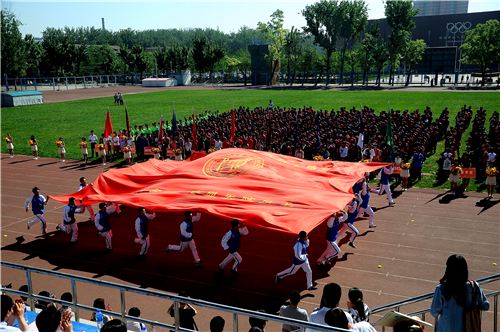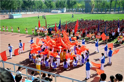 运动会开幕式上,伟德官网代表方阵在最后一个出场。整个方阵的同学都隐藏在一面巨幅红旗下,伴随着音乐,方阵同学带来了魅力震撼的集体舞,同时蛟龙出海,一条中国味十足的巨龙冲出方阵,长龙在阳光的沐浴下金光闪闪、气势不凡。以团体舞为背景,腾飞的巨龙与12人舞旗表演相互映衬,造就了一幅幅美轮美奂的醉人景色,博得了现场观众的阵阵欢呼。