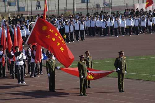 全体起立,升国旗,奏国歌