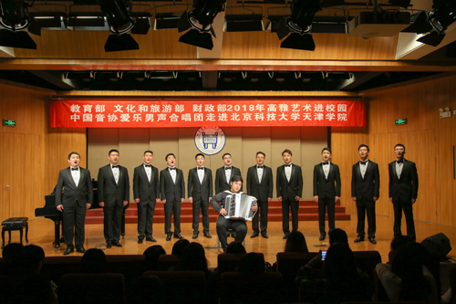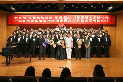为认真学习贯彻党的十九大精神,进一步落实《教育部办公厅 文化和旅游部办公厅 财政部办公厅关于开展2018年高雅艺术进校园活动的通知》,9月17日18:30“教育部 文化和旅游部 财政部 2018 年高雅艺术进校园——中国音协爱乐男声合唱团走进bevitor伟德国际1946官网”音乐会在伟德官网弘艺音乐厅精彩上演。教务处长张建华、招生就业处长柯瑜、艺术系副主任林碧芸等与百余名师生共同观看了演出。
