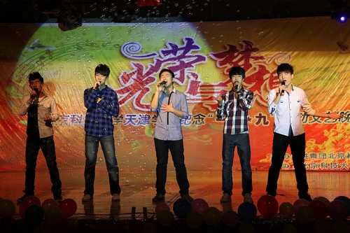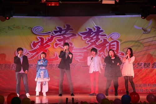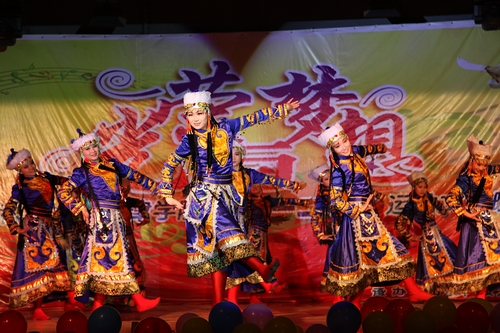 七点整,主持人热情洋溢的开场拉开了整场晚会的序幕。春天永远是艺术家永恒的主题,首先登场的节目是管弦乐团带来的合奏《春之声圆舞曲》。一曲独唱《暗香》之后,管弦乐团带来的小合奏《赛马》仿佛让大家置身于宽广的大草原上。戏剧社为观众献上的小品《甄嬛外传》,带大家一同穿越,演绎了一场别开生面的后宫争斗戏,引得观众阵阵笑声,掌声不断。浓郁的民族风格,强烈的时代气息,鲜明的地域特色,厚重的艺术氛围,舞蹈团带来的蒙古舞蹈《塔林毕斯贵》让大家感受到了蒙古族女性的端庄典雅、豪迈奔放。合唱团的小合唱《年轻的战场》给正值青春年华,年少轻狂的年轻人无限鼓舞。民乐合奏《远情》让大家感受到了民族音乐的独特气息。舞蹈团的热舞《bad girl》把晚会推上了一个高潮。合唱团的独唱《掉了》以轻盈的风格与电声乐队带来的激情乐队演绎形成鲜明对比,给现场观众带了了不一样的视听感受。晚会特邀民乐团外聘指导老师石露云辉演绎唢呐独奏《阳光》,石老师的精彩演绎博得观众阵阵掌声。合唱团带来的歌曲串烧激情而又精彩,唱出了歌曲的灵魂。舞蹈团的经典获奖节目《映山红》为党的十八大胜利召开献上了光荣礼赞。晚会在合唱团的男女对唱《天地在我心》的歌声下落下帷幕。演出中还播放了艺术团日常排练以及指导教师寄语的视频短片,短片回顾了艺术团在过去几年取得的各项成绩,展望了未来的奋斗目标。