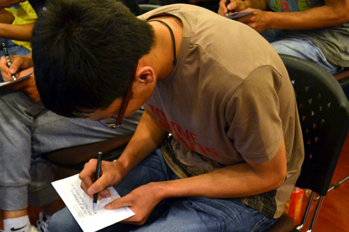 在一段简短的视频之后,主题活动正式开始。孝心社张永康同学首先与大家分享了他对孝道的理解和体会。道桥1205班同学自己拍摄并制作的视频记录了同学们对父母的爱,流露了同学们对父母真诚的关心。孝心社刘晓通过自己的亲身经历告诉了大家“行孝不能等”这个道理。部分同学的父母以视频的方式,表达了他们对于在远方求学的同学们的挂念和祝福。“希望孩子在学校注意身体,好好读书,以优异的成绩完场学业”、“希望孩子在学习快快乐乐生活,健健康康成长”一句句朴实无华的话语让在场的既惊喜又感动。杨富荣同学的妈妈得知学院将举办此次活动后,不远千里,从贵州来到活动现场。她对同学们说:“希望同学们在保重身体的前提下,用心学习、努力钻研,以优异的成绩回报母校,回报社会。”活动最后,同学们将自己对爸爸妈妈想要说的话写在明信片上,装在提前准备好的信封里,并在现场共同喊出了自己心里的那句:“爸爸妈妈,我爱你们”!