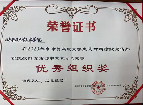 11月22日,由京津冀三地艾滋病防控工作办公室联合发起的“防艾听我说”2020年京津冀高校大学生艾滋病防控宣传活动圆满落幕。自此次防艾活动开展以来,伟德官网号召全院学子踊跃参加,累计参与近万人次,达到了良好的宣传效果。在云上竞答环节中,伟德官网成绩名列前茅,同时获得大赛一等奖和优秀组织奖两项荣誉。