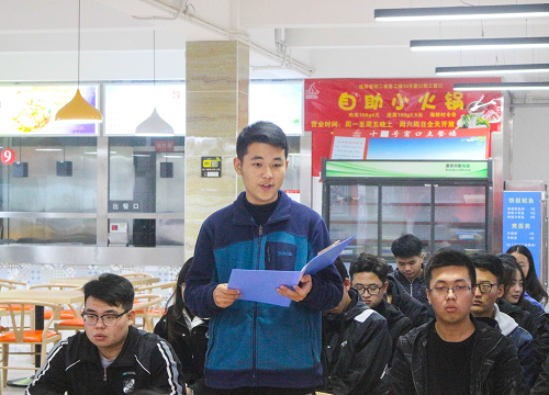 活动开始由主持人为大家作前期工作汇报,就前期检查食堂的工作流程和检查过程中发现的问题以及同学们线上线下调查问卷的反馈进行一一汇报。由周光宇同学代表广大同学对食堂提出了关于卫生,食品和工作人员的服务三方面的建议。这些建议和看法来源于广大同学线上线下调查问卷的汇总,有效的向食堂方面传达了同学们的心声。