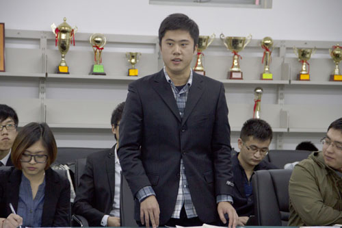 在庄严的国歌,学习会正式开始,本次学习大会分为专题发言、现场学习讨论和总结点评三个阶段。会议首先由求是学会宣讲员做引入性发言,总结了十八届三中全会精神,赢得热烈的掌声。在专题发言环节,各代表以PPT的形式,配合生动的语言展示学习情况,首先院学生会代表就“设立国家安全委员会”这一主题出发,从国家利益始终放在第一位,努力熟悉有关国家安全的法律法规,怎样善于识破伪装,克服妄自菲薄等不正确思想,积极配合国家机关工作等方面进行了阐述,并指出国家安全,人人有责。之后社团联合会代表从“划定生态保护红线”出发,以图片和表格形式讲述生态对世界文化的重要性,指出一些国家以生态破坏为代价发展经济,最终得不偿失。求是学会宣讲员则以“成立全面改革领导小组”这一主题入手,提出改革要从顶层设计做起,而全面深化改革小组的成立则起到总体设计、统筹规划、全面推进的作用,同时,作为旨在“探索人生,探索社会”的求是学会,将努力做好理论性团学组织的模范作用。紧接着管理系和法律系分团委代表结合专业发展和学习,分别以“深化财税体制改革”、“确保依法独立公正行使审判权检查权”为主题进行发言。在自由发言环节,参会学生干部及老师针对十八届三中全会公报中提到的诸多方面发表不同的观点和看法,分享自身学习感受,同时也对作为学生干部如何在今后继续学习十八届三中全会提出了建议。学习会最后,团委书记罗富臣对活动进行总结,并提出学生干部应该充分认识到学习十八届三中全会大会精神的重要性,同时要求要有担当,要明事理、辩是非,要有政治敏锐感,积极传播正能量,希望全体参会干部将会议精神传播到每位学生干部,让每位同学都熟悉时政、认知时政、了解时政。伴随着全场热烈的掌声,主持人宣布本次活动圆满结束!
