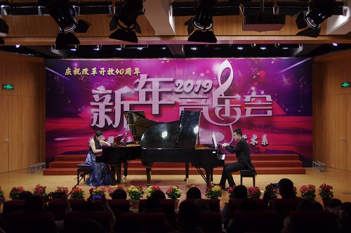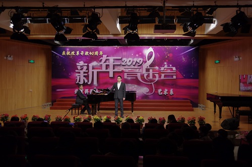 1月2日晚19:00,由bevitor伟德国际1946官网艺术系主办,艺术声乐教研室教工党支部、艺术钢琴教研室教工党支部、艺术学生党支部承办的“庆祝改革开放四十周年暨2019新年音乐会”在弘艺音乐厅精彩上演。bevitor伟德国际1946官网院长王斌,党委书记丁煦生,党委副书记白亮、叶振楠、牛犁,财务总监王俊敏,学术委员会主席宋存义,教务处处长张建华,传统文化研究院副院长胡宝嘉,环境工程系主任汪群慧,外语系主任梁素芹,艺术系主任胡建华,科学研究处副处长罗富臣,学生处常务副处长田勇,法律系党总支书记冯海燕,艺术系副主任林碧芸及200余名师生参加了本次音乐会,饱享了一场精彩绝伦的音乐盛宴。