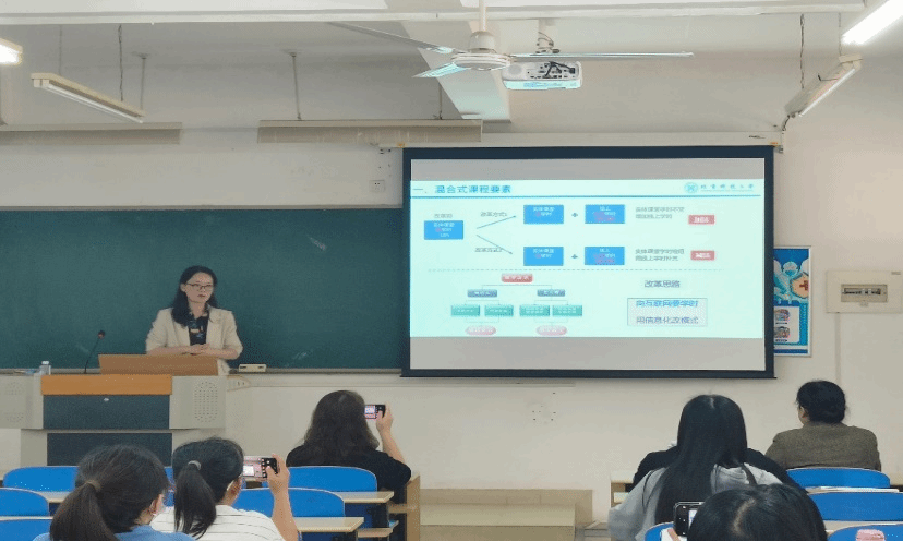 周老师此次的讲座内容丰富,课程案例的分享让与会老师对线上线下混合式课程建设有了更直观的认知,提出的课程建设的建议实用。相信与会老师在今后的混合式课程建设的探索过程中定能提高教学改革意识与信息技术的敏感性,将线上线下、课内课外和不同的教学方式交叉融合、对教学环节进行重塑,奋力打造信息时代的一流课程。