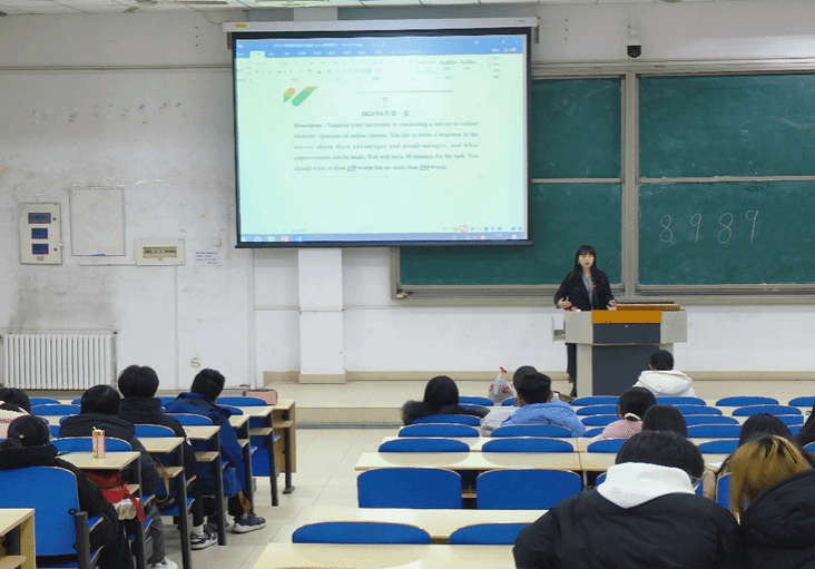 为了激发学生的英语学习兴趣,帮助学生掌握大学英语四级的考试技巧和方法,增强其应试的信心,为高效备考提供积极的推动,从而提高伟德官网学生的英语水平和四级考试通过率,于12月7日晚六点9教109开展“大学英语四六级考试备考策略与技巧”主题讲座。本次讲座由外语学院副院长张绚和大学英语教研室主任高子琳老师主讲。