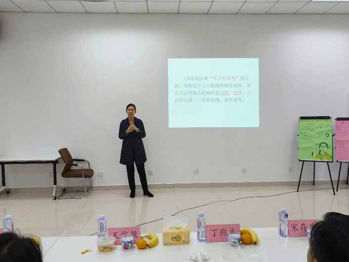 张绚老师对本次ISW培训从困惑-解惑-收获-期盼开启了经验分享,通过三天半连续性、高强度的培训,取得了高效率成果,概括指出ISW培训核心在于微课教学演练,学员在ISW中既是教学者又是学生的双重角色,目的是为了帮助学员增强教学能力与自信,协助学员成为更具反思能力的教学实践者,在深入理解参与式学习理论,实施参与式课堂教学互动,掌握了BOPPPS教学法的同时,使不同学科的教师,也会产生碰撞交流,发现对方的特色亮点。
