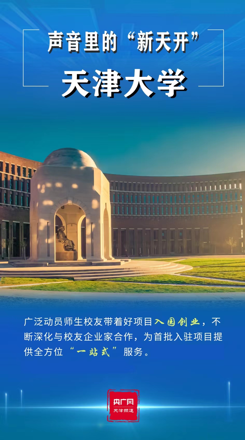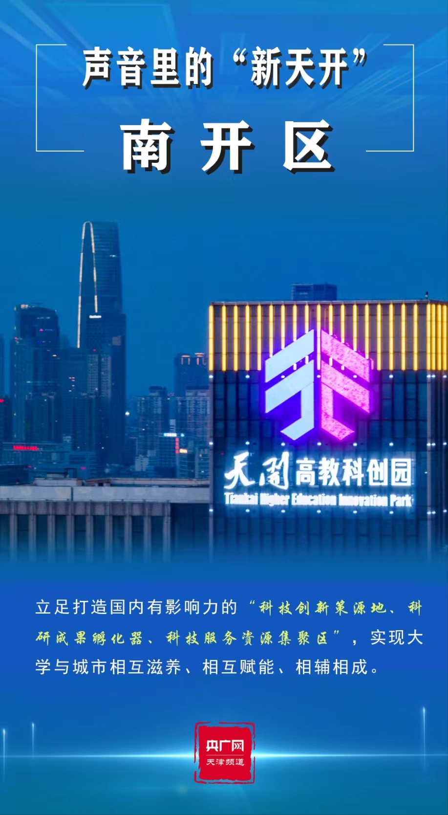 央广网天津5月12日消息 2023年是全面贯彻党的二十大精神的开局之年。寅末卯初,天津市委经济工作会议召开,高站位、高标准谋划“十项行动”,逐步将党的二十大擘画的宏伟蓝图推向实景。其中,一个响亮的名字——“天开高教科创园”(以下简称“天开园”)引发广泛关注。“天开”,既融合了南开大学、天津大学两所百年名校,亦有得天独厚、开拓进取等寓意,为人们带来无限想象空间,可谓石破“天开”。