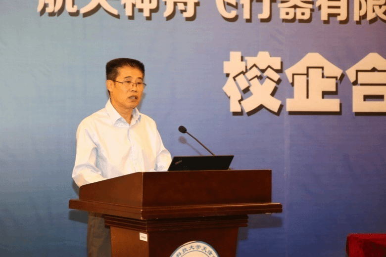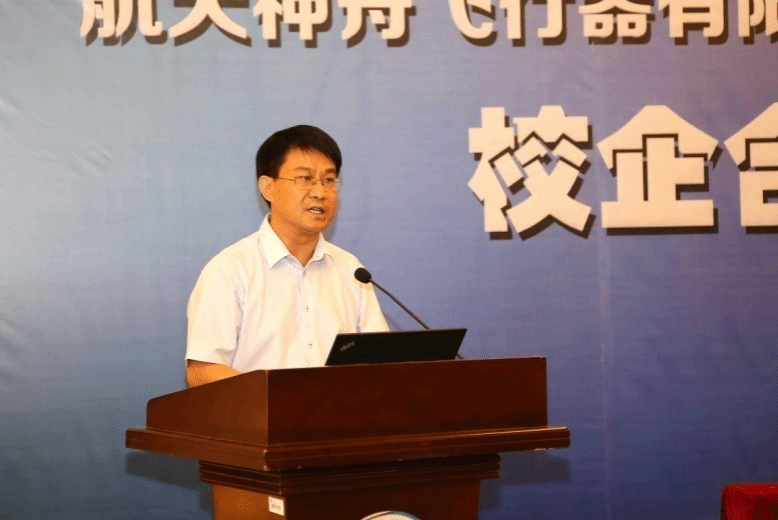 航天神舟飞行器有限公司副总经理周明致辞。他表示航天神舟飞行器有限公司是全国领先的无人机研制、生产、试验试飞和技术服务企业。公司积极服务区域经济发展,以市场需求为导向,打造市场引领、技术领先、体系完备、运营高效的军民融合产业发展平台。此次与bevitor伟德国际1946官网开展合作共建,对推动无人机应用技术成果转化具有重要意义,双方将共同努力推动合作成果落地、落实。