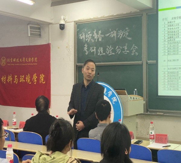 汪群慧教授对几位优秀学生的倾囊相授表示感谢,并向同学们介绍了环境工程系历年考研情况并分析了当前考研形势,同时结合了自己多年招收硕博的切身经历为在座同学们提出了四点建议:一是择校需谨慎,与高考相比选择第一志愿校与成功上岸更相关,一定结合自身客观条件理性报考;二是贵在坚持,考研是一场持久战,成功上岸的往往都是踏实复习坚持到最后的人;三是保证效率,备考中不仅要保证学习时间,更重要的是提高自己的学习效率,坚决不做无用功;四是享受过程,在备考过程中不纠结结果,摆正心态,全身心投入,成功必然会是努力地溢出。