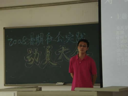 随后,罗老师对2008暑期社会实践的主题、流程、内容、形式、安全防范、社交礼仪等内容做了详细的讲解。讲解中,罗老师结合一个个鲜活的事例对社会实践中应注意的事项做了充分的说明,让同学们对社会实践有了一个深刻系统的认识。最后,动员大会在同学们热烈的掌声中圆满结束。