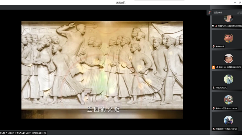 天津市优秀学生干部、天津市海河自强奖学金获得者、原学生会执行主席、18级优秀学生代表耿翔做经验分享。耿翔同学从执着的信念、优良的品德、丰富的知识及过硬的本领这四个方面向我们分享了他的经验,鼓励学弟学妹们以五四精神为指导,珍惜青春年华,不辱时代使命,不畏挫折,继续奋斗。