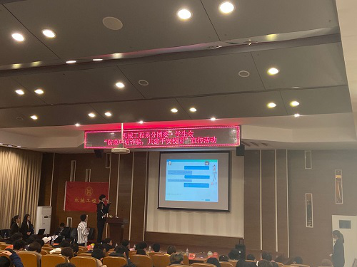为维护我们安静的学习环境,提高防范意识,使同学们在平时的生活中远离诈骗分子,圆满的完成自己的学业,机械工程系于12月1日下午5点在理工图书馆学术报告厅举办了以“防范电信诈骗,共建平安校园”的情景剧活动。此次活动到场的有机械工程系分团委书记张军老师、材料系19级辅导员韩子玉老师以及机械系分团委、学生会主席团和部长团成员。