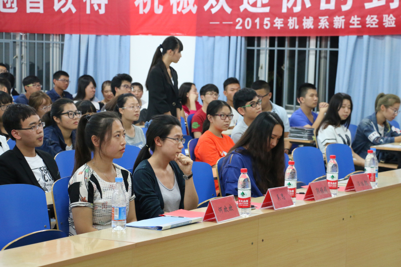 9月16日晚7点,在伟德官网8教101室,机械系举办了2015届新生经验交流大会,机械系党总支书记郭雅娟,机械系团委书记吴思,15级导员何欢欢、汪佳懿,Mooc学社主席赵忠,以及机械系分团委学生会主席团和部长团出席此次大会。