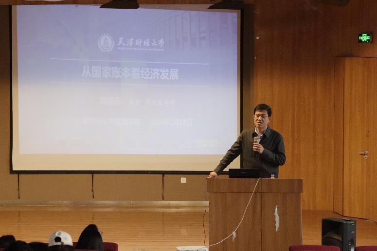 陈教授从现代财政制度、财政预算与国家账本、财政收支与经济发展的关系等多个方面,为师生们揭示了财税体制在国家经济发展中的重要作用。他详细解读了我国复式预算的构成,特别是“四本账”——一般公共预算、政府性基金预算、国有资本经营预算、社会保障基金预算,深入剖析了这些账本背后的经济逻辑和发展脉络。