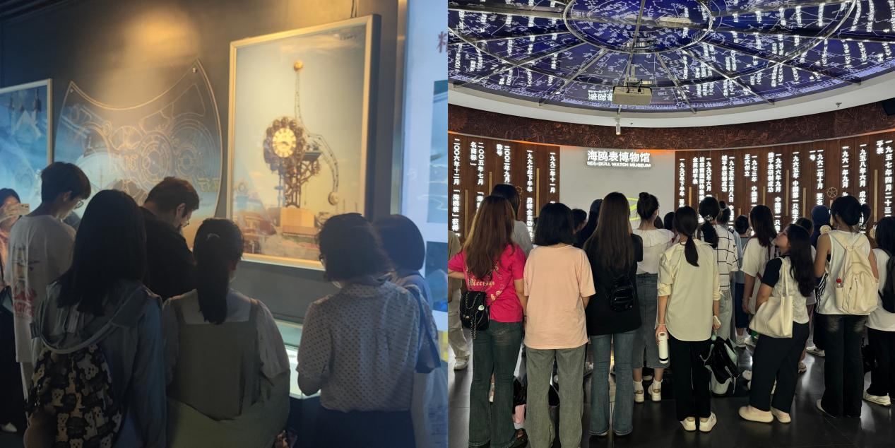 最后,师生沿着时间大道来到了海鸥表博物馆,工作人员向大家介绍了海鸥表业集团的发展历程。并引领师生们观赏了博物馆中陈列的设计精美、工艺先进的各类自主研发的手表及陀飞轮零件等。此外,在专卖店中,同学们也看到了最新款的手表产品,通过产品同学们形象地看到了我国制表业的兴起与奋斗拼搏的历程。