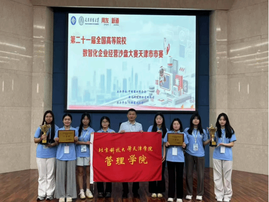 2025年6月7日,第二十一届全国高等院校数智企业经营沙盘大赛天津市赛圆满落幕。管理学院选派的两支参赛队伍凭借出色表现,双双荣获一等奖。全国大学生数智化企业经营沙盘大赛被纳入《2023全国普通高校大学生竞赛分析报告》竞赛目录,是经管领域极具影响力的大学生竞赛项目。本次天津市赛由中国商业联合会主办,天津商业大学承办,新道科技股份有限公司提供技术支持。本科组汇聚了来自天津师范大学、天津财经大学、天津商业大学等高校的24支精英队伍。