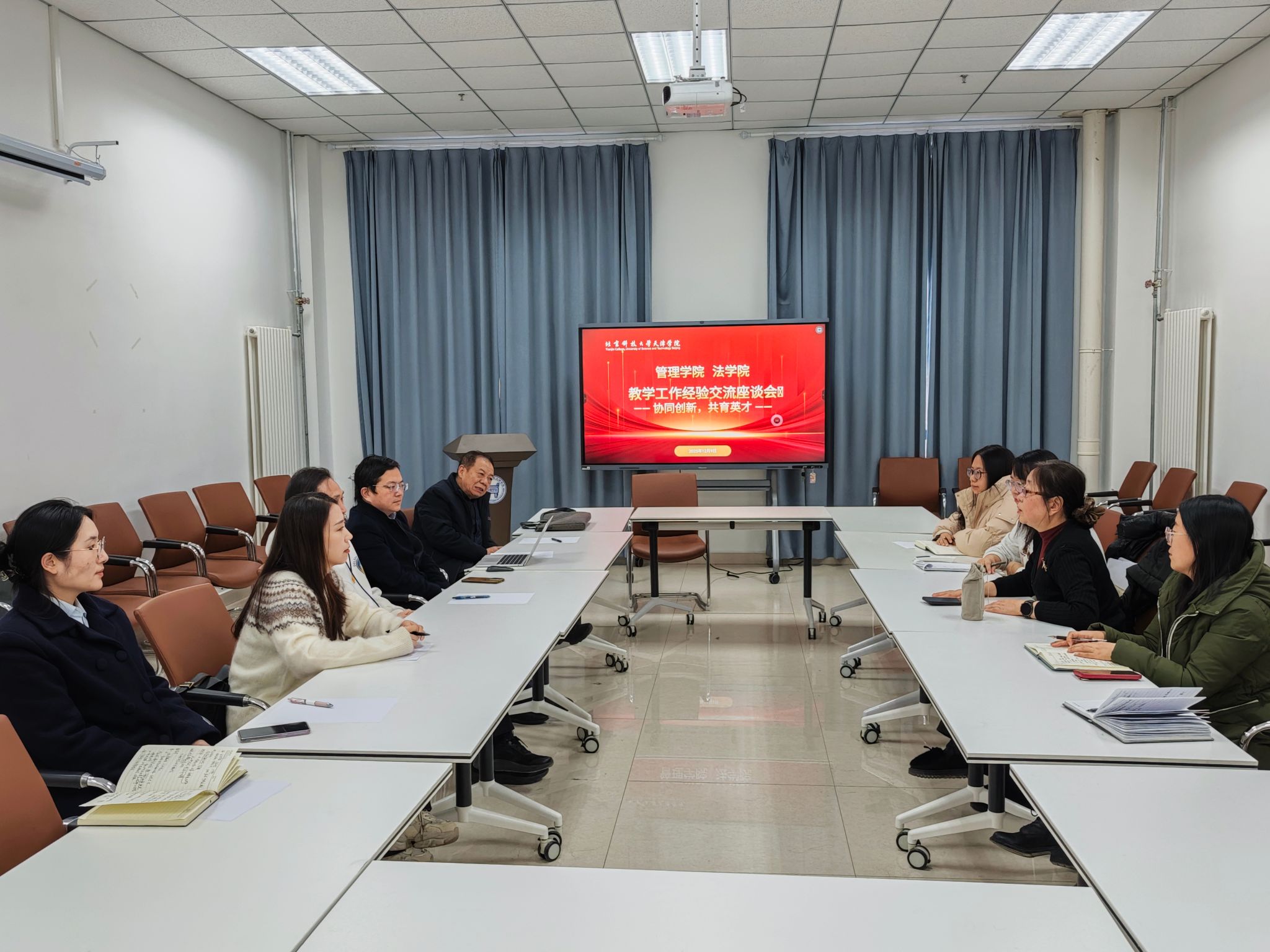 在此背景下,为促进教学经验互鉴,优化实习实践教学体系,全面提升人才培养质量,管理学院与法学院于2025年12月9日联合举办“协同创新,共育英才”教学经验交流座谈会。法学院院长朱京安老师、常务副院长邢晓晖老师,管理学院常务副院长王宾容老师出席会议,法学院知识产权教研室主任杨馨淼老师、实践教学指导中心主任刘国平老师、教师代表王一然老师,管理学院会计学教研室主任任洁老师、财务管理教研室主任张小云老师、审计与税收教研室主任李双双老师、实践教学指导中心主任邵帅老师共同参会,围绕教学改革与实习实践工作深入交流经验,共探育才提质路径。