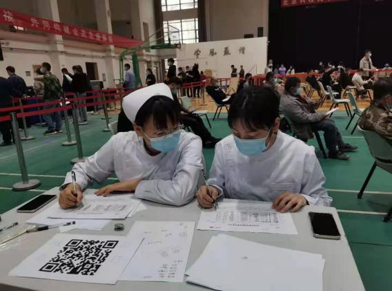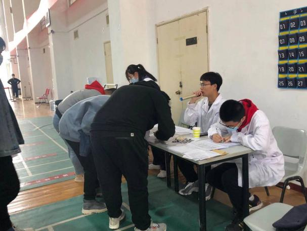 自疫苗接种开始,大健康学院进行排班、轮岗,保证每日有10名志愿者在工作现场,他们的主要根据地是疫苗接种的留观区,工作内容:疫苗接种后进入留观区,留观30分钟无异常反应、签字确认后,方可离开体育馆;如有异常反应由专业医务人员处置。