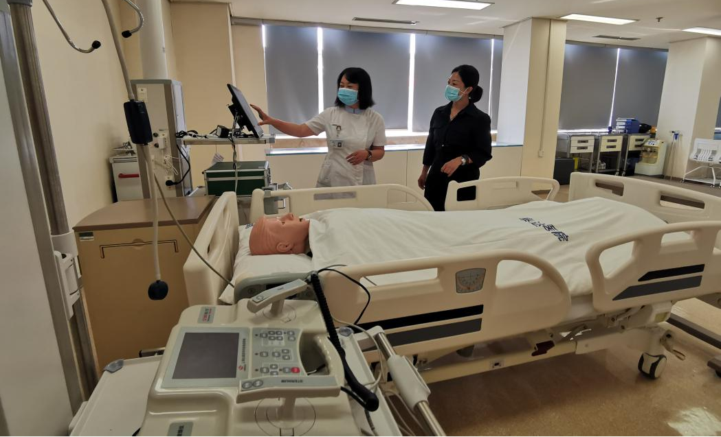 在泰达医院实习的同学们,同样跟随带教老师倒班值班,除了在临床科室学习理论和操作技能外,临床思维能力也得到一定提升。带教老师通过使用多功能全系统模拟人,设置不同的临床症状,让学生整合多系统知识体系,进而分析判断病人情况,并做出相应处理。另外实习队长袁子淇在轮值志愿者期间,工作严谨,认真负责,受到带教老师一致好评。