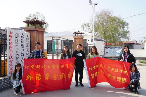 在2018年4月25日星期三的下午,外语系分团委的成员们在宝坻区大唐庄镇南里自沽村进行了一次实践育人活动,此次实践活动由李光老师带领,活动主题为“新时代 · 一带一路实践行”。活动大致分为两个环节,宣讲环节和互动环节。