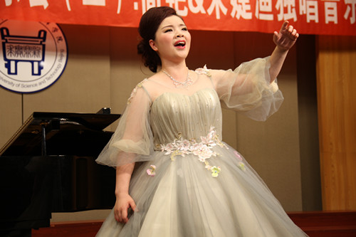 第一部分是由民族女高音简艳(2013级声乐演唱专业方向学生)带来的两首歌曲 《映山红》 和《纳西篝火阿哩哩》以及次女高音朱婕渔(2013级声乐演唱专业方向学生)的两首作品《怀念曲》 和《你们可知道》,把整场音乐会带入入美妙的音乐氛围中。