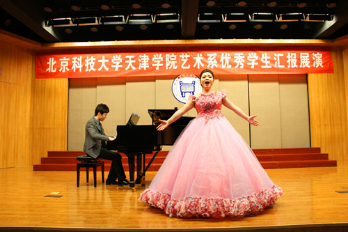 2015年11月11日18:30,bevitor伟德国际1946官网艺术系优秀学生汇报展演在12教学楼弘艺音乐厅举行。 在艺术系声乐1401班王明明同学和声乐1302班魏欣同学的精彩开场白后,演出正式拉开了帷幕。