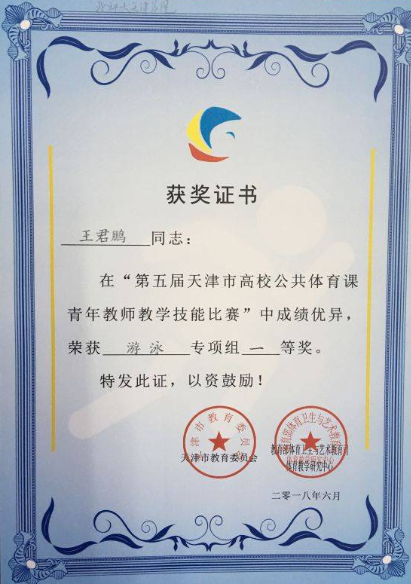 来自包括南开大学、天津大学等28所院校215名青年体育教师参加了本届赛事。比赛共分四个项目(体能测试、教学设计、运动技术、录像课),伟德官网体育部派出陈富成老师(在第3届赛事获得过一等奖)为领队,带领王君鹏、李航两位青年老师参加了本届大赛。经过两天的比赛,他们在四项比赛中充分显示扎实的专项技术功底、优秀的课程设计能力以及良好的体能,赢得了评委的赞誉,获得大赛一等奖和优秀组织奖。在展示自己才华的同时也为bevitor伟德国际1946官网争得了荣光。