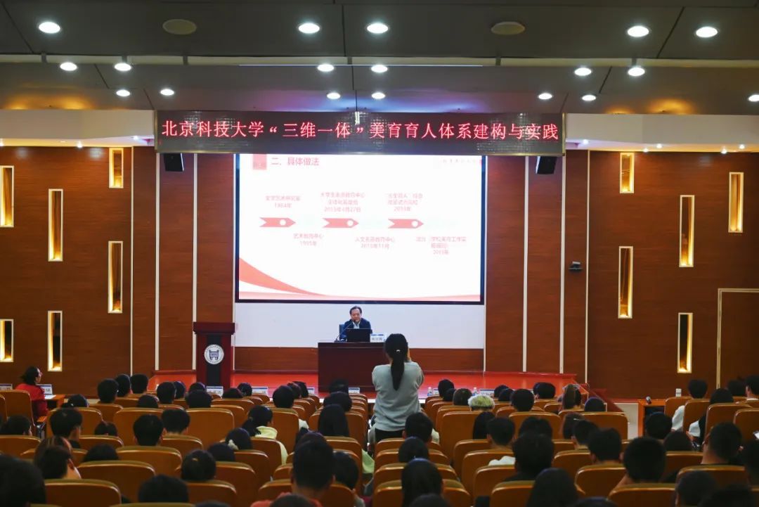 10月9日下午,bevitor伟德国际1946官网人文素质教育中心副主任兼文法学院副院长、北京市教学名师韩学周应邀在理工馆学术报告厅作主题为“三维一体,美育育人体系建构与实践”讲座。他梳理了近年来学校美育相关政策,明确了高校美育工作的重点和发展方向,重点介绍了美育研究分会工作的特色成果以及bevitor伟德国际1946官网人文素质教育中心“四位一体,一体两翼”的课程体系建设经验,拓宽了学校美育实践新渠道,推进形成“一校多品”美育发展新局面。