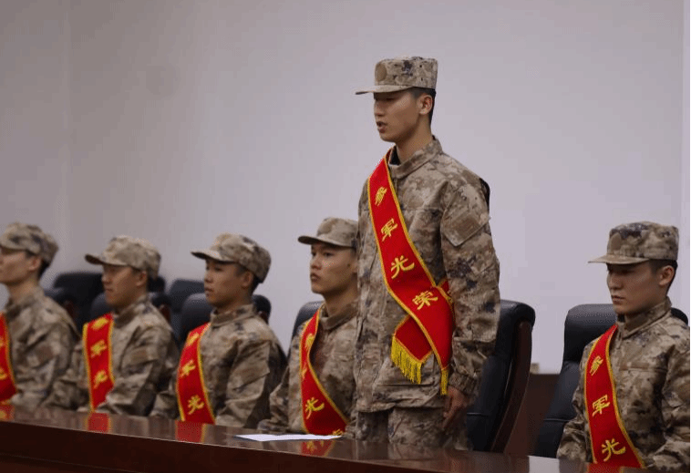 新入伍大学生温皓鑫发言,他表达了对学校四年培育的感谢,并表示作为一名毕业生光荣入伍是当代青年生逢其时的责任与使命,在即将踏上军旅生涯之际,他代表10位战友表态:坚定信念,忠诚于祖国;刻苦训练,提高自己的军事素质;严守纪律,争做优秀军人。