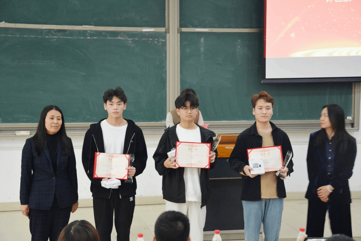 其次颁布的是此次大赛三等奖获得者,由学院产学研办公室主任彭鹏、信息工程学院副院长于静,以及中软国际天津公司天津区域总监任孝媛为获奖者颁奖;