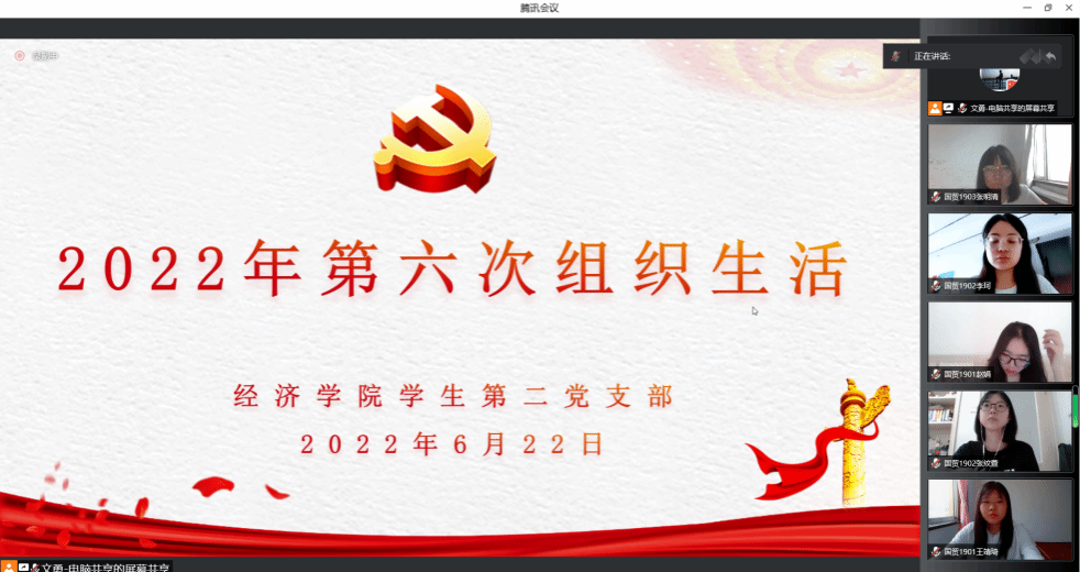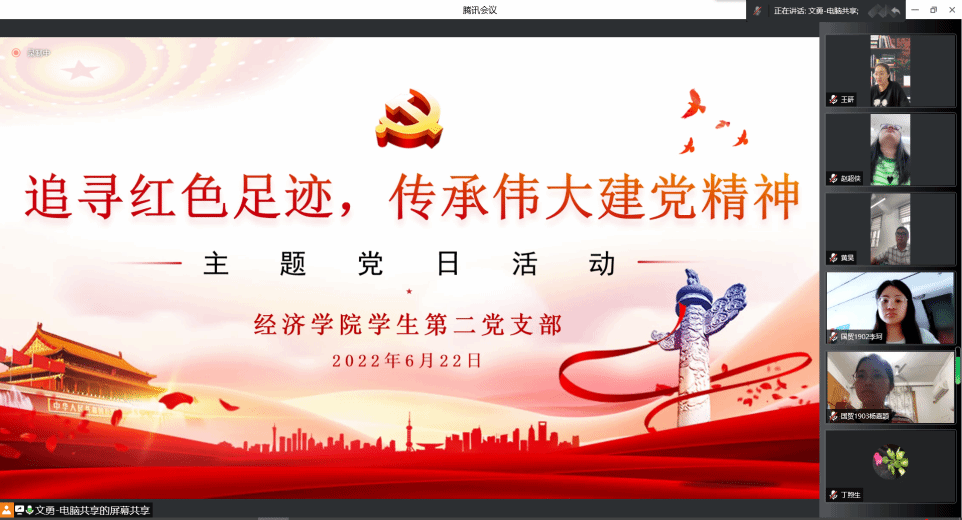 为激励广大党员坚定理想信念,不忘初心、牢记使命,重温党的光辉历史,继承和发扬党的光荣传统和优良作风,进一步增强党的凝聚力和战斗力,6月22日,经济学院学生第二党支部通过腾讯会议线上形式开展2022年第六次组织生活和“追寻红色足迹,传承伟大建党精神”主题党日活动。bevitor伟德国际1946官网院长、党委书记丁煦生与党支部全体师生党员参加,此次活动由党支部书记文勇同志主持。