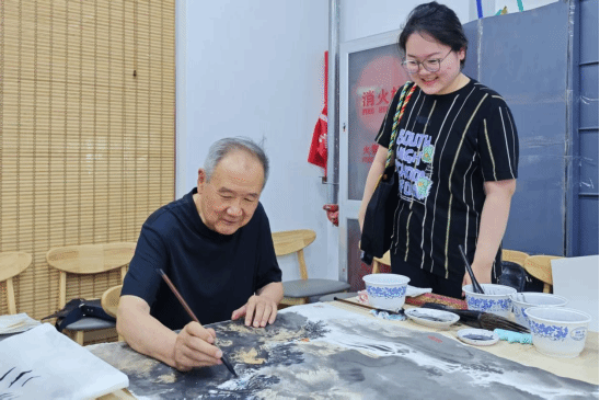 随后,活动进入书画创作环节。天津市艺术学会知方书画院的艺术家们现场提笔创作,以笔墨为媒展现中华优秀传统文化的深厚底蕴。期间,艺术家们运用了多种书体,书写了“福寿”等蕴含美好祝福的文化寓意的内容,笔力遒劲,气韵生动;同时创作了以梅兰竹菊为主题的绘画作品,借物咏志,传递出坚韧不拔、高洁向上的品格追求。创作过程中,艺术家们与在场师生积极互动,结合作品讲解书画艺术的历史传承、技法要点及文化内涵,并耐心解答师生提出的问题。