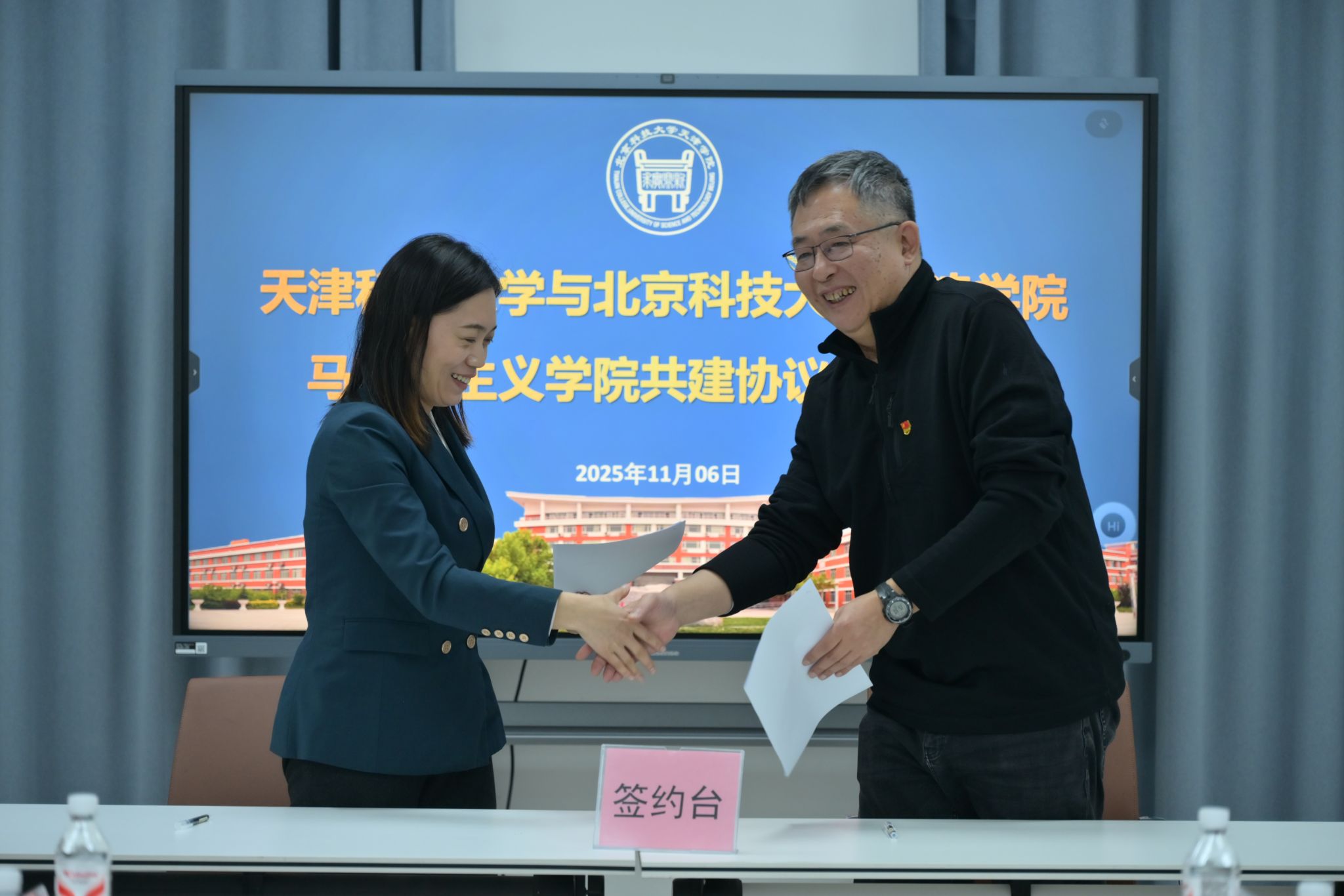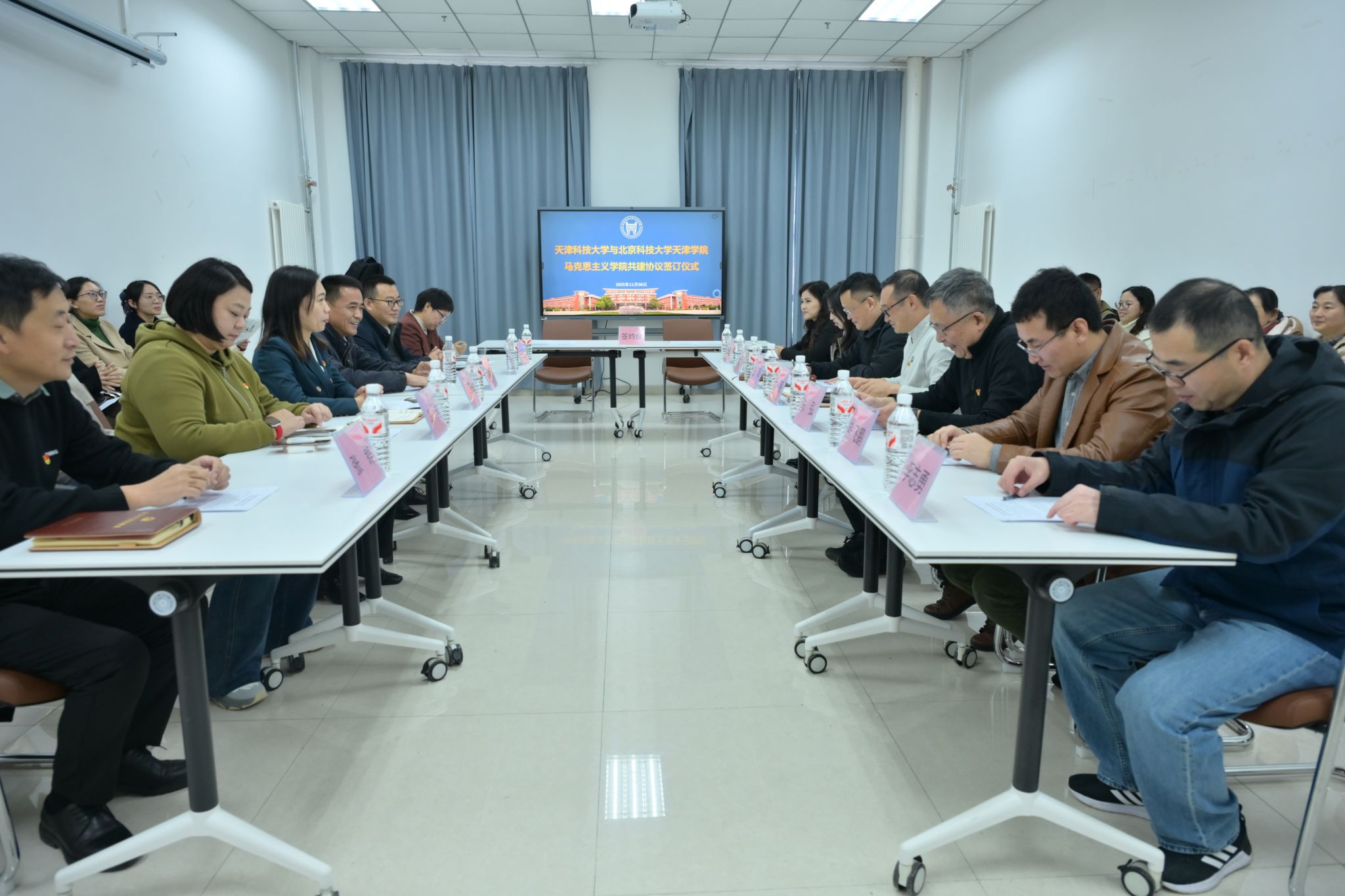 天津科技大学马克思主义学院副院长闫翠娟、伟德官网马克思主义学院院长陈弘签署结对共建协议。