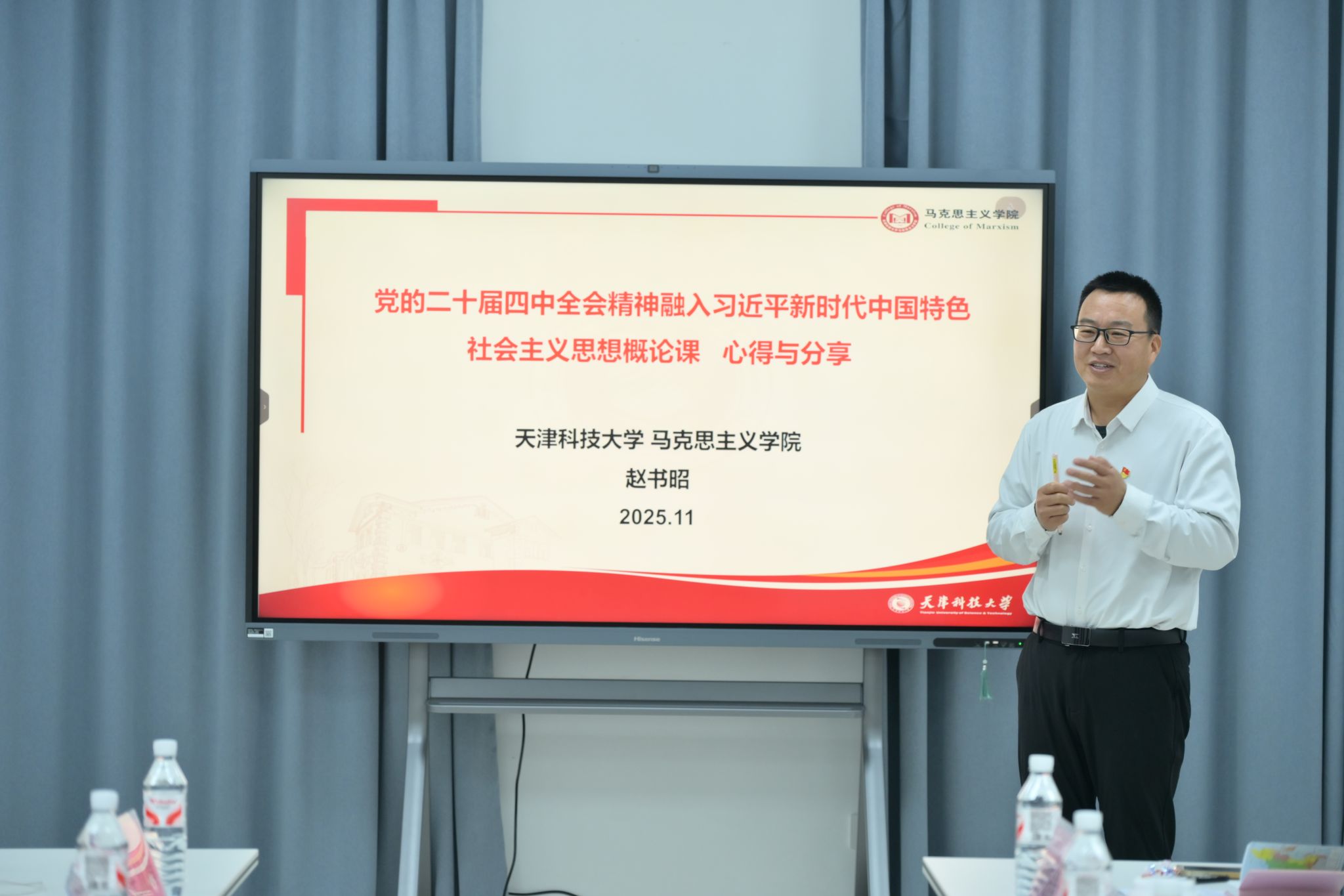 签约仪式结束后,两校共同举行学习贯彻党的二十届四中全会精神集体备课会。伟德官网思政课教师邢钰舒就二十届四中全会精神融入《马克思主义基本原理》课中“矛盾‘共性’与‘个性’的辩证统一”章节做了课程分享,天津科技大学马克思主义学院赵书昭教授作了党的二十届四中全会精神融入《习近平新时代中国特色社会主义思想概论》课心得与分享。