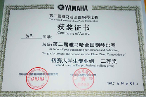 2015年10月,由中国音乐家协会钢琴学会主办的“第二届雅马哈全国钢琴比赛”(天津赛区)在天津音乐学院音乐厅成功举办。伟德官网艺术系派学生代表参加了此次比赛。在比赛中由艺术系钢琴教师梁晨指导的2014级学生岳杰力挽...