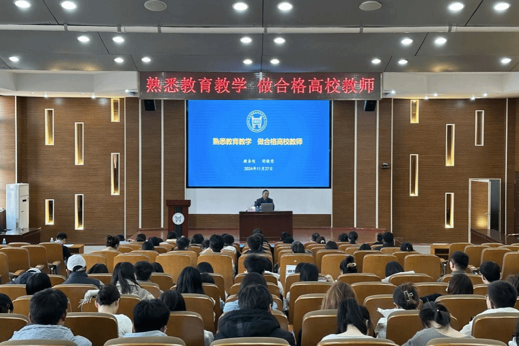 为进一步引导新入职教职工快速融入学院教育教学环境,熟悉教育教学规范及部门规章制度,提升职业素养与教学能力,11月27日下午,学院在理工馆学术报告厅开展2024年新入职教职工岗前培训第十二讲,邀请教务处处长舒敬荣教授作题为“熟悉教育教学 做合格教师”的专题培训。全体新入职教职工参加培训。