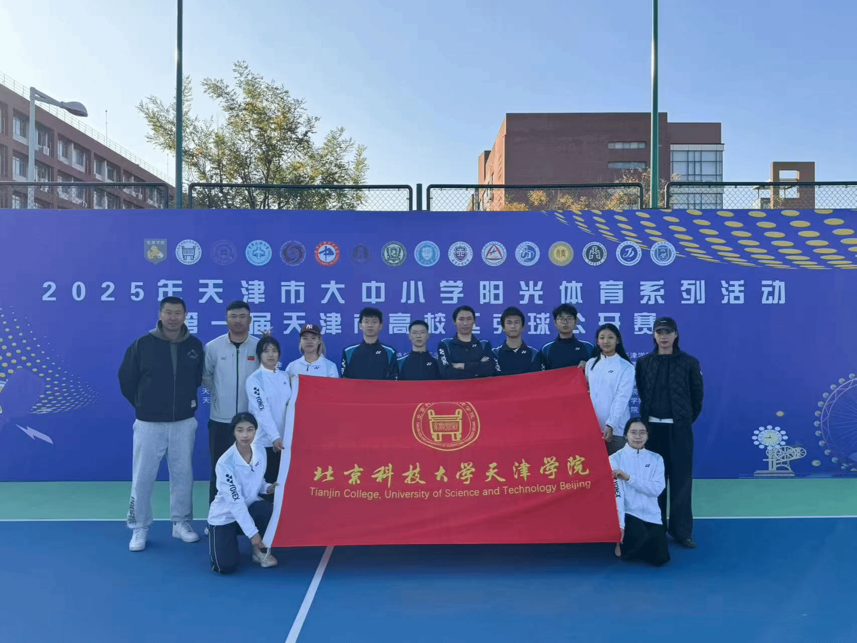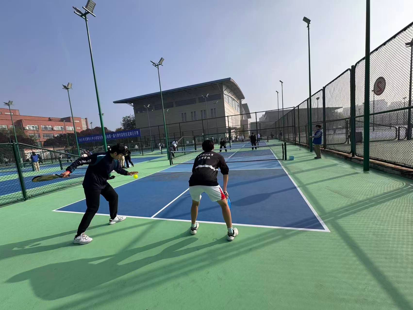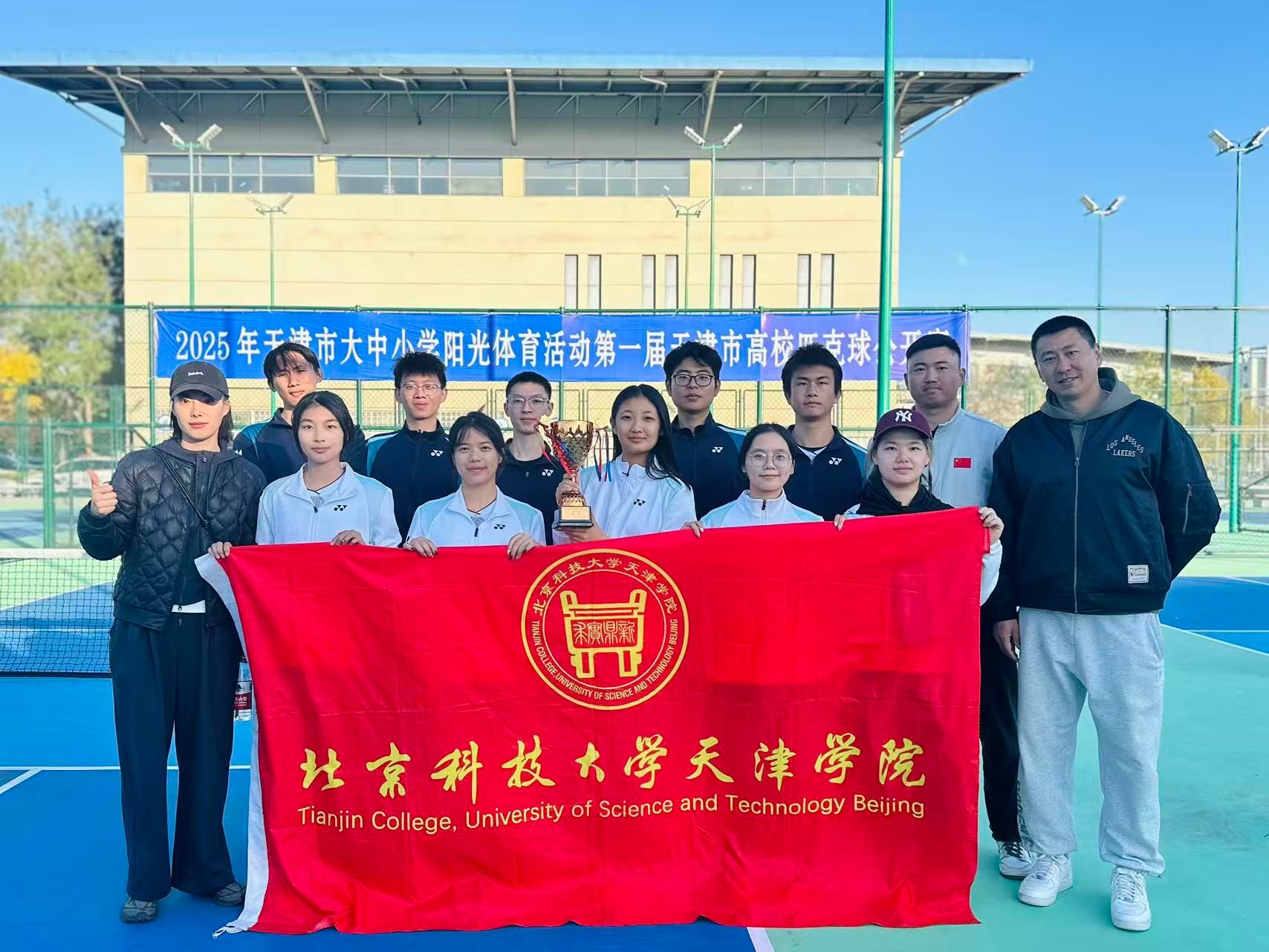 2025年11月1日,由天津市教育委员会、天津市学生体育联合会和天津市匹克球运动协会共同举办的2025年第一届天津市高校匹克球公开赛在天津理工大学匹克球场激烈开打,本次赛事吸引了全市17所高校,共计200余名运动员、教练员和领队踊跃参与。伟德官网由体育部赵文男、杨永康、程旸三位老师任教练员和10名球员组队参赛,经过激烈角逐,伟德官网匹克球队获得天津市高校团体第三名(季军)。