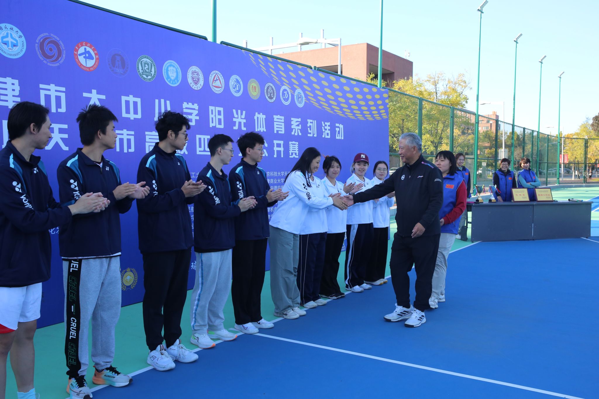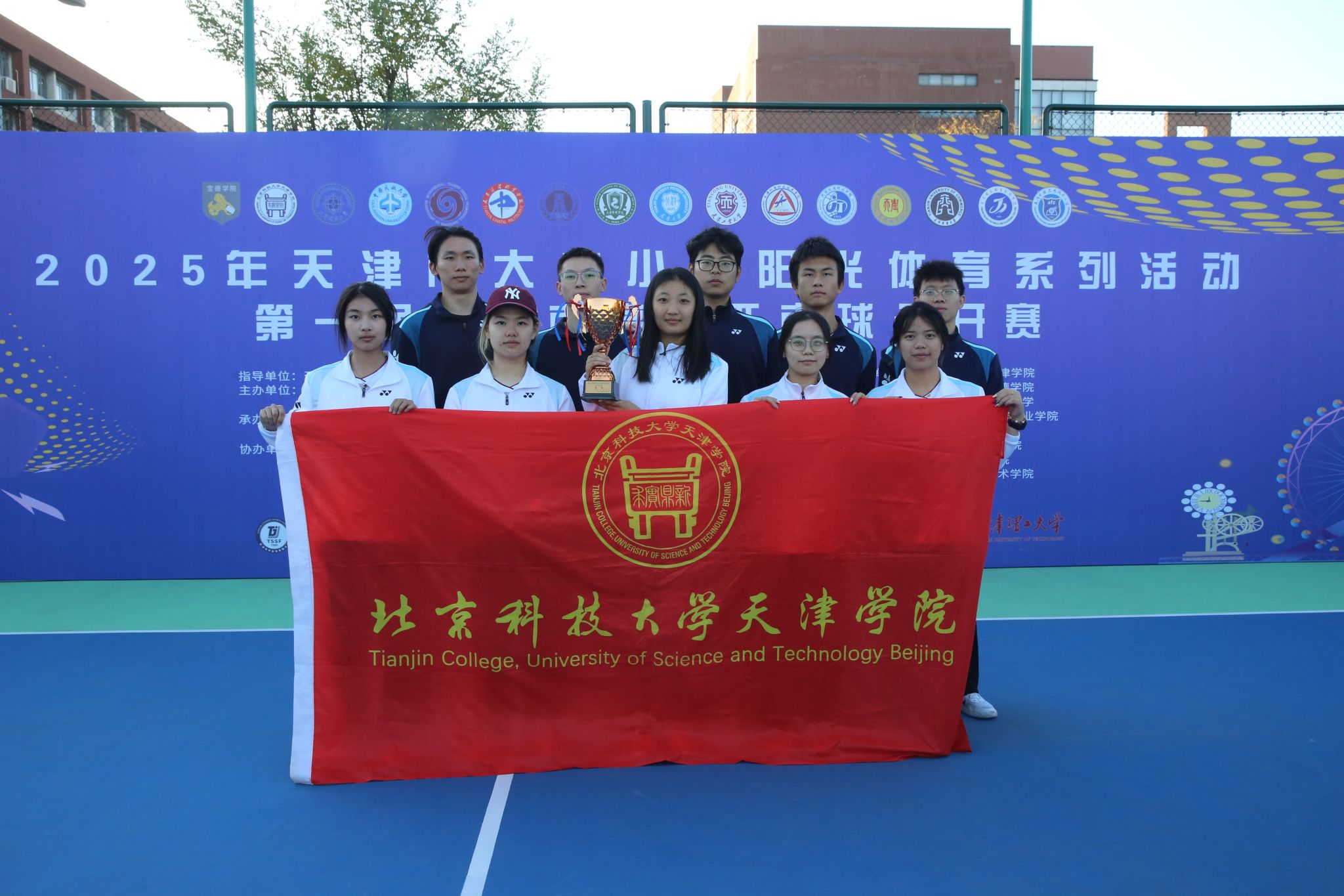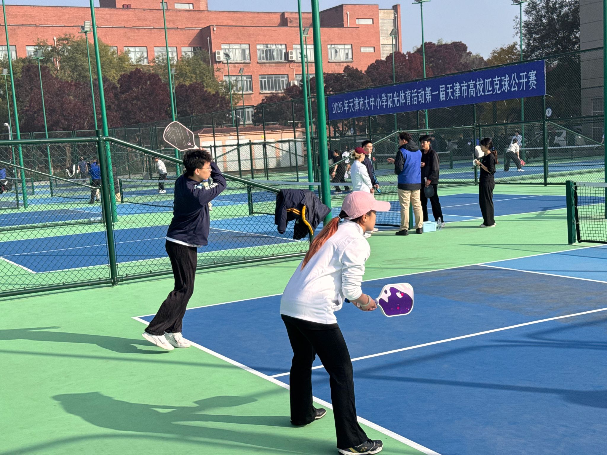 2025年11月1日,由天津市教育委员会、天津市学生体育联合会和天津市匹克球运动协会共同举办的2025年第一届天津市高校匹克球公开赛在天津理工大学匹克球场激烈开打,本次赛事吸引了全市17所高校,共计200余名运动员、教练员和领队踊跃参与。伟德官网由体育部赵文男、杨永康、程旸三位老师任教练员和10名球员组队参赛,经过激烈角逐,伟德官网匹克球队获得天津市高校团体第三名(季军)。