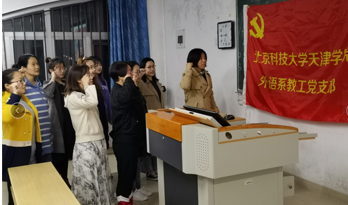 重温入党誓词。经过寻足迹和观伟迹,外语教工党支部全体党员深深地感受到自己的初心和使命,热血沸腾,我们面对鲜红的党旗,再次庄严宣誓:“我志愿加入中国共产党,拥护党的纲领,遵守党的章程,履行党员义务,执行党的决定,严守党的纪律,保守党的秘密,对党忠诚,积极工作,为共产主义奋斗终生,随时准备为党和人民牺牲一切,永不叛党。”这是党员心底最真挚的心声和终身奋斗的方向。