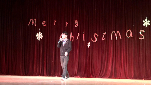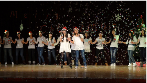 本次晚会以“欢乐圣诞节”为主题,节目精彩纷呈,一曲《江南style》拉开了晚会的帷幕,由本年度英语歌手大赛冠军献上的歌曲《light》凭借其激昂的曲调带动起观众火热的心,覃福强,李婷同学表演的小品《潘婷广告》将观众引领进了一个诙谐幽默的世界,让大家捧腹大笑。踩气球,萝卜蹲等互动环节让现场观众参与其中,增添了欢乐的气氛。舞蹈《wonderful》再次将晚会气氛推向高潮。最后,在英语1201班的小合唱《jingle bells》中,晚会徐徐落下帷幕。