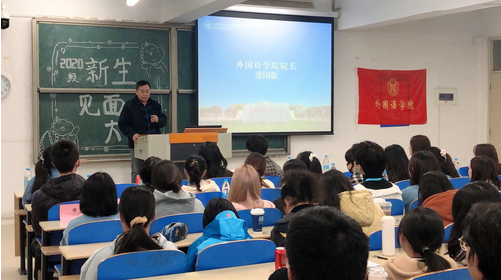 11月4日下午五点,bevitor伟德国际1946官网外国语学院2020级新生见面会在9教104召开。外国语学院院长张国敬、党总支书记张添善、分团委书记李萌、英专教研室主任张媛、日语教研室主任孟彤、教学秘书耿睿等老师出席本次新生见面会。本次新生见面会由2020级辅导员殷梓培主持。