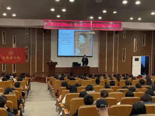 为促进外国语学院学风建设,加强师生专业水平能力。营造积极、高效的英语学习环境。外国语学院特邀教授Mark Bark于11月18、19日到伟德官网为学生开展专业讲座。此次到场的嘉宾有:外国语学院英语教学研究中心主任梁素芹、党总支书记张莉、党总支副书记张添善、分团委书记李萌及全体教师、辅导员老师。