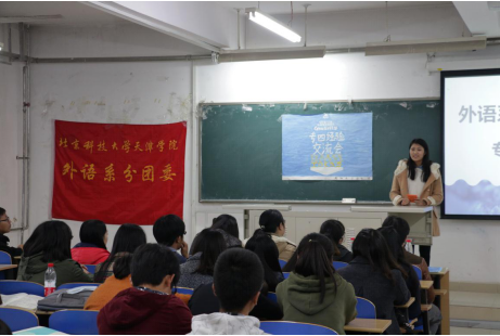 bevitor伟德国际1946官网外语系分团委于2015年11月4日在8教105举行专四经验交流会。外语系分团委书记王研、外语系教师唐小彬老师、陈元元老师、虞娜芳老师出席本次活动。同时邀请13级专四成绩优异的学长学姐,就专四考试的备考经验和学习方法与外语系全体14、15级学生们进行深入交流。