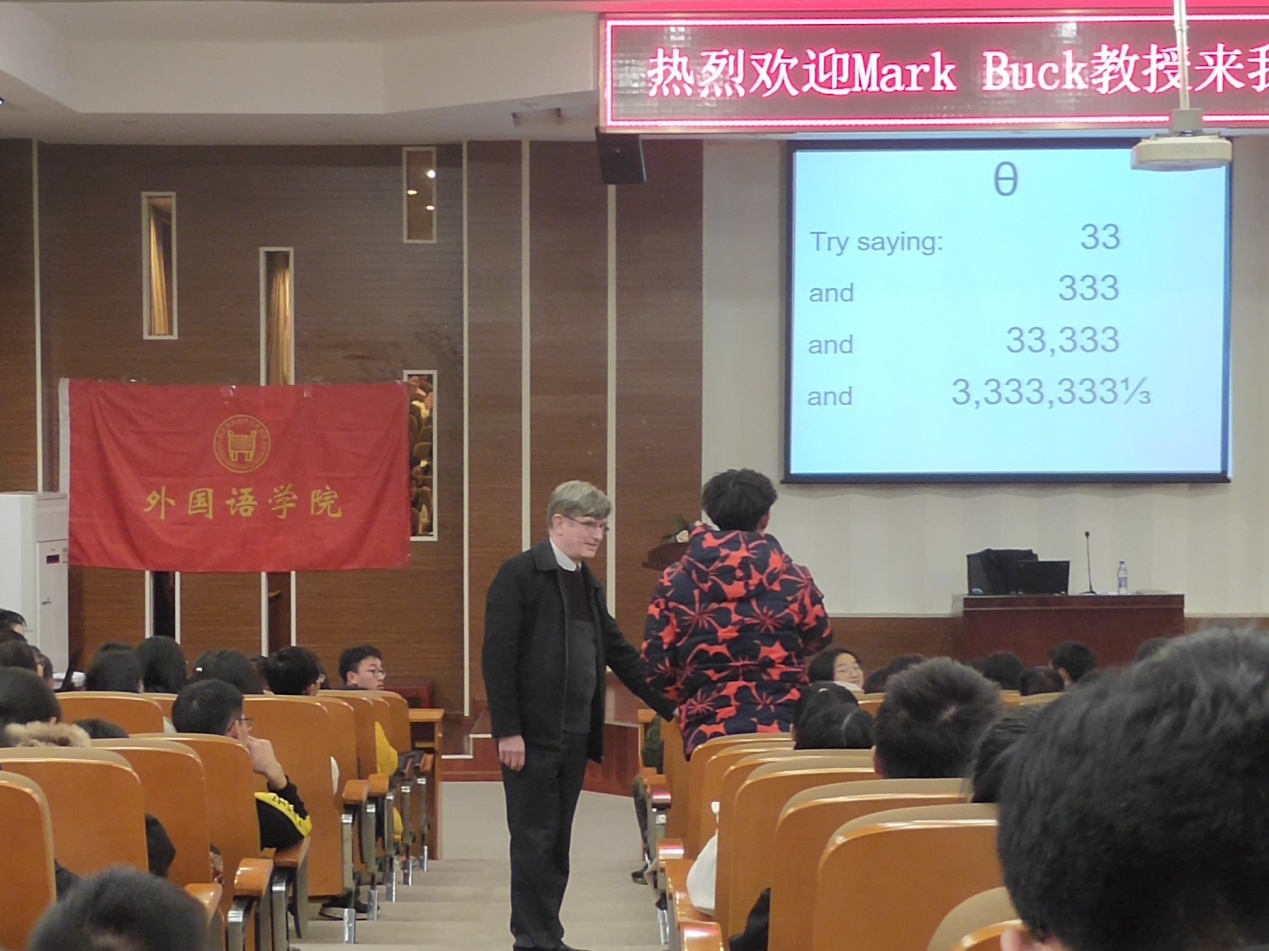 11月18日,第一场讲座以“English Pronunciation”为主题,Mark教授以幽默风趣的语言教大家发英音以及重音,轻音和连读。在讲解过程中,同学们积极与教授互动,收益匪浅。